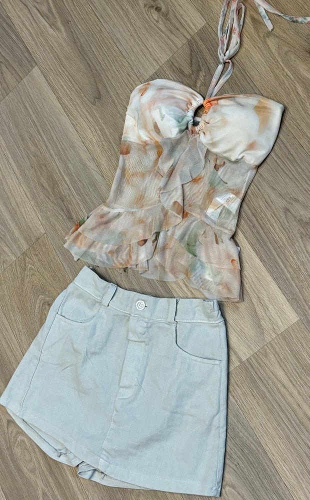 Bandeau print frill top - 4 colours